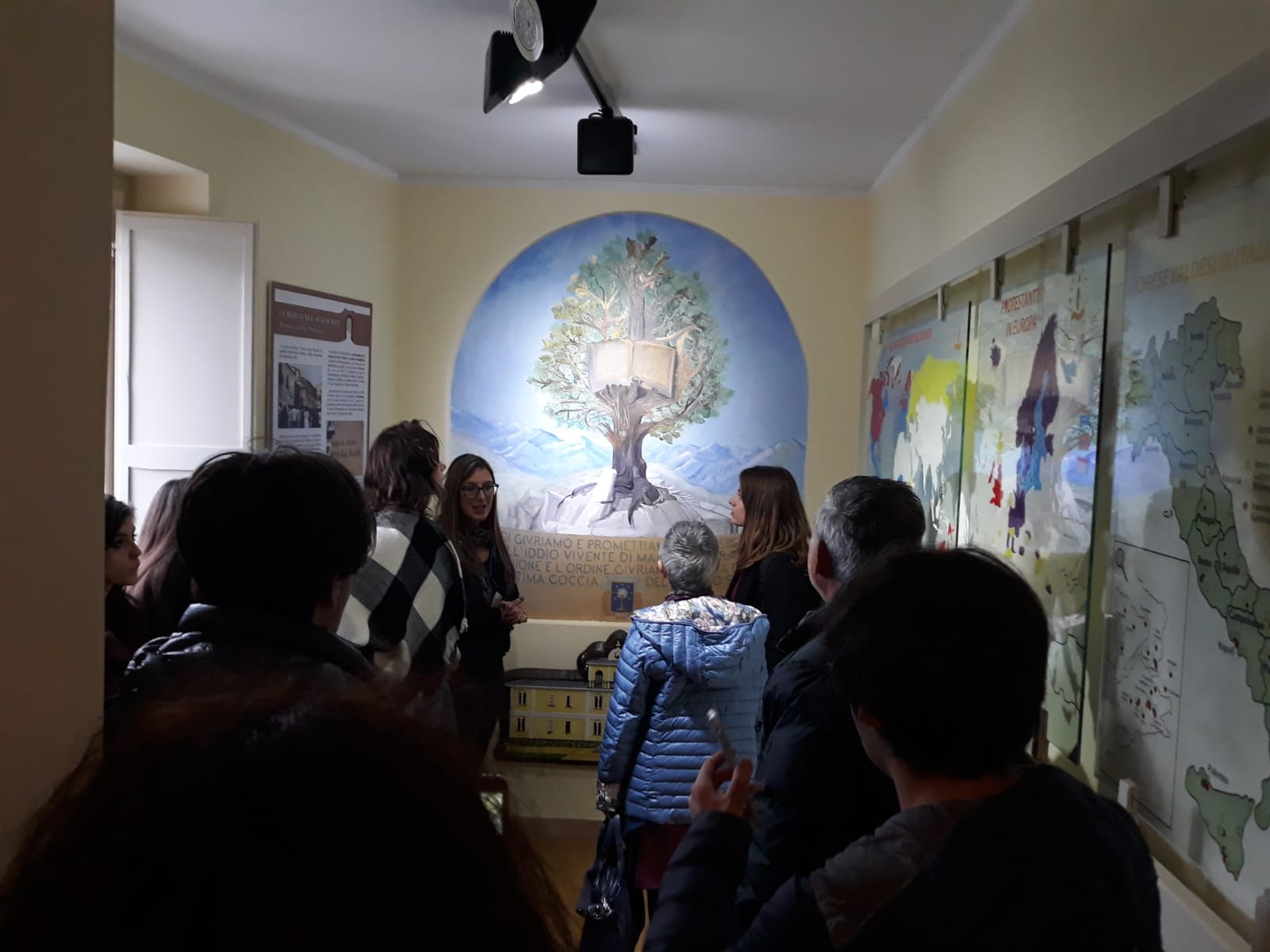 Sandra Treviso, conduce gli studenti e i professori in visita presso le sale del Museo Valdese