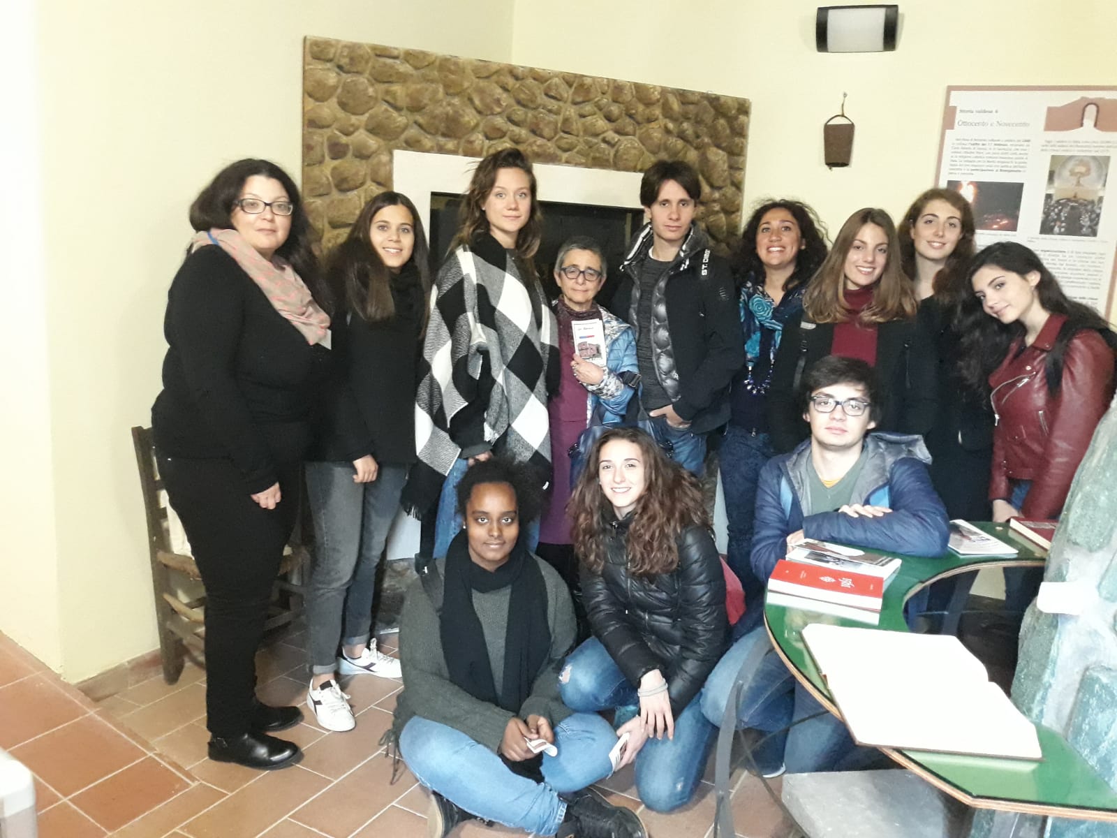 Foto di gruppo degli studenti insieme a Teresa Sacco (prima da sinistra), guida del Museo Valdese