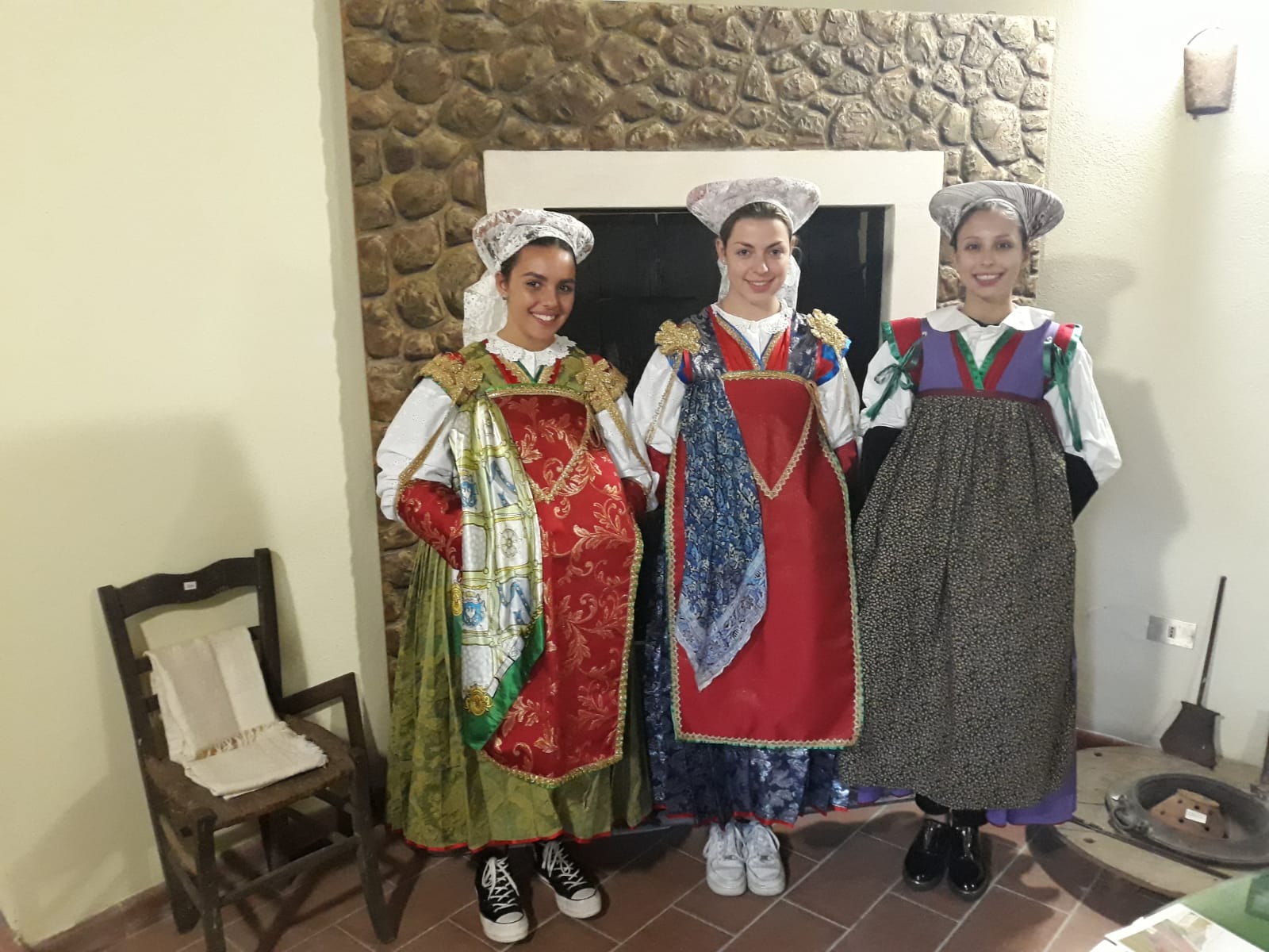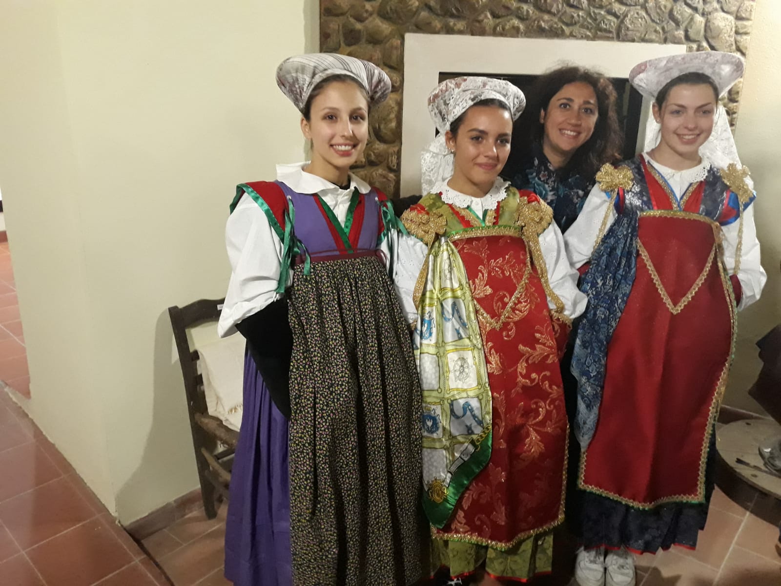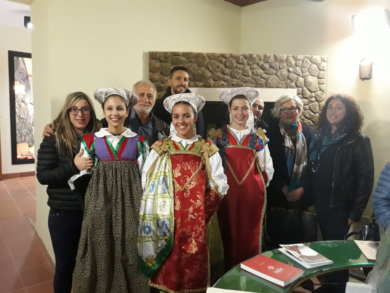 Studentesse vestite con gli abiti tipici guardioli, insieme ai responsabili scolastici e alla presidentessa della fondazione occitana Gabriella Sconosciuto (a destra)