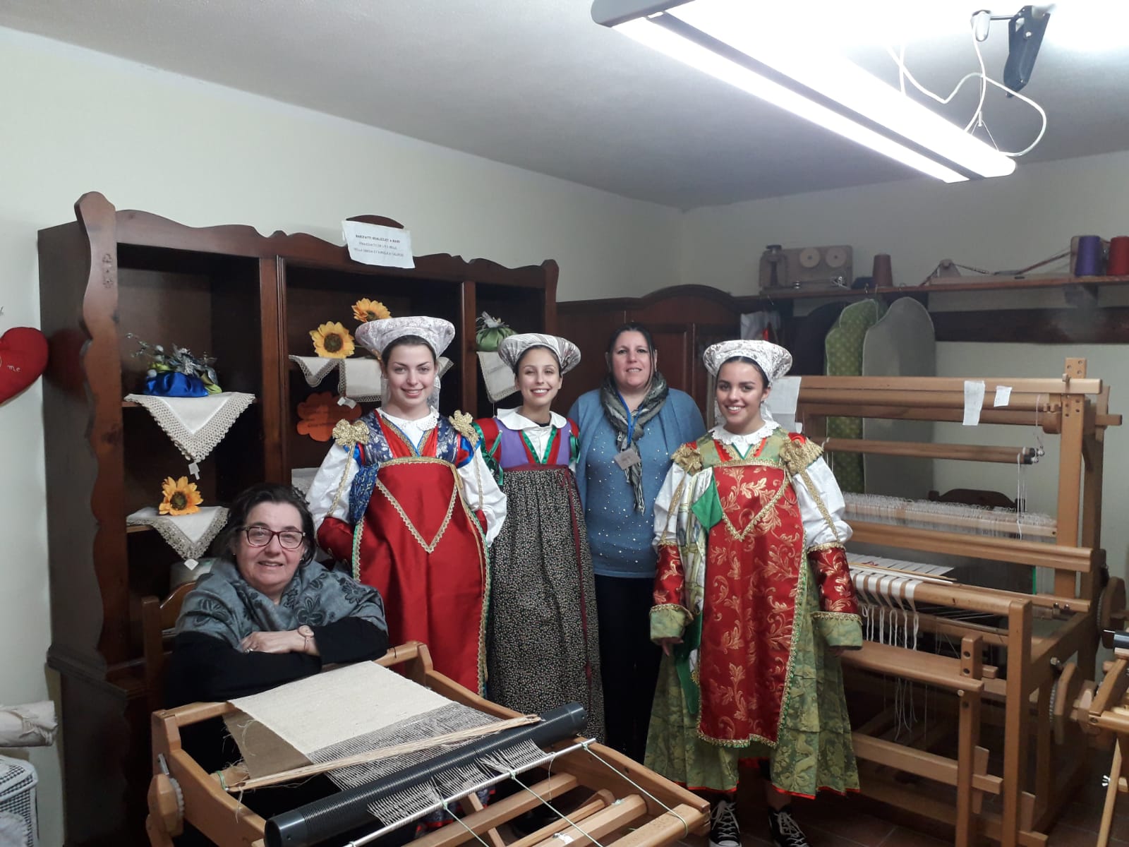Le ragazze in abito insieme alle responsabili del Laboratorio tessile Tina Galderisi e Concetta Avolio